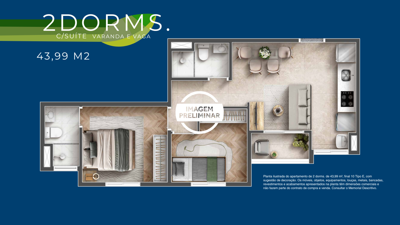 -2 dormitórios, sendo 1 suíte - a partir de R$ 390.000,00