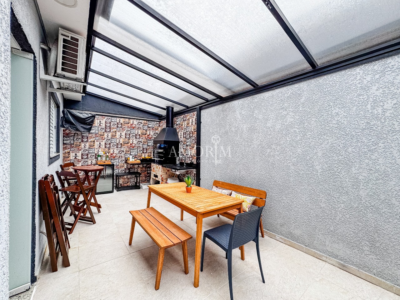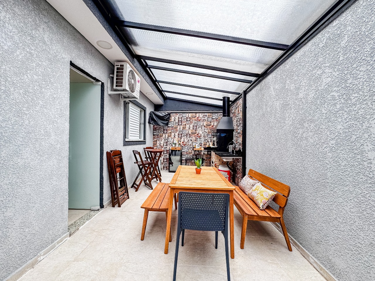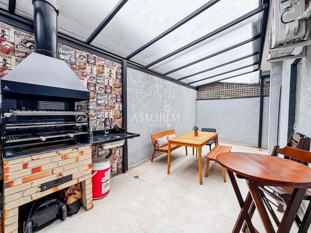 - Área gourmet com churrasqueira, banheiro externo e cobertura retrátil