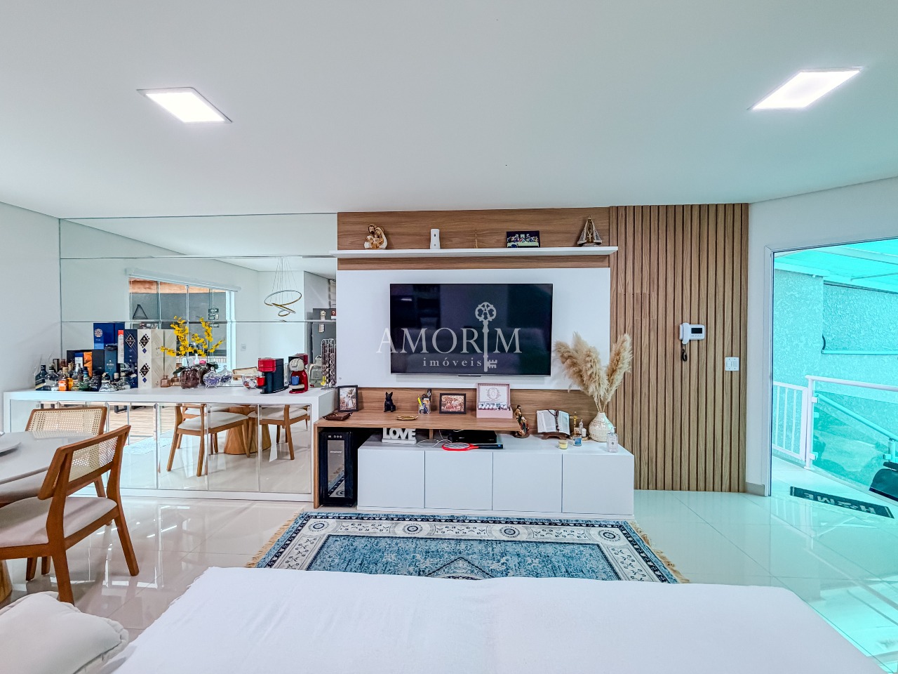 - Acabamento de alto padrão com painel inteiriço em madeira na sala