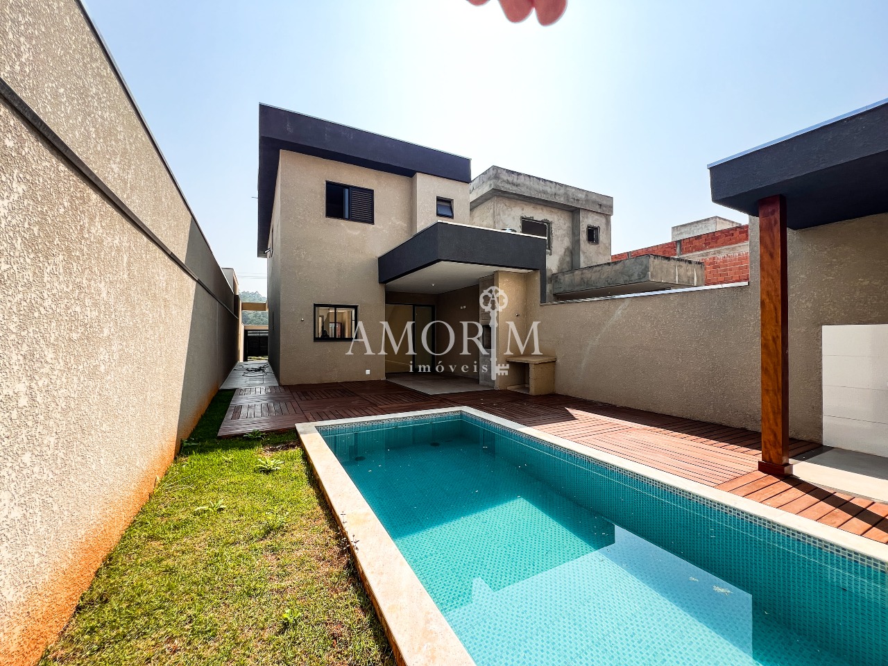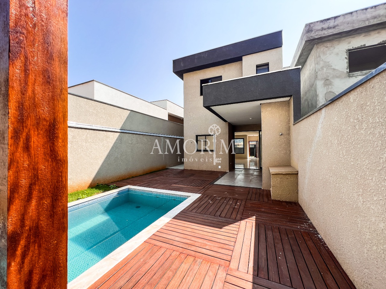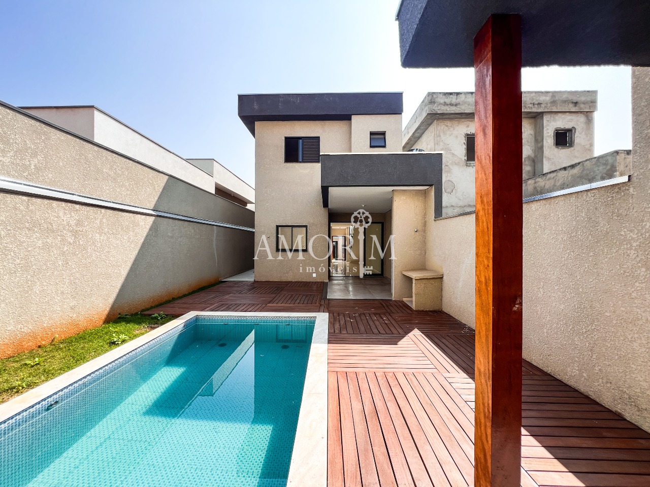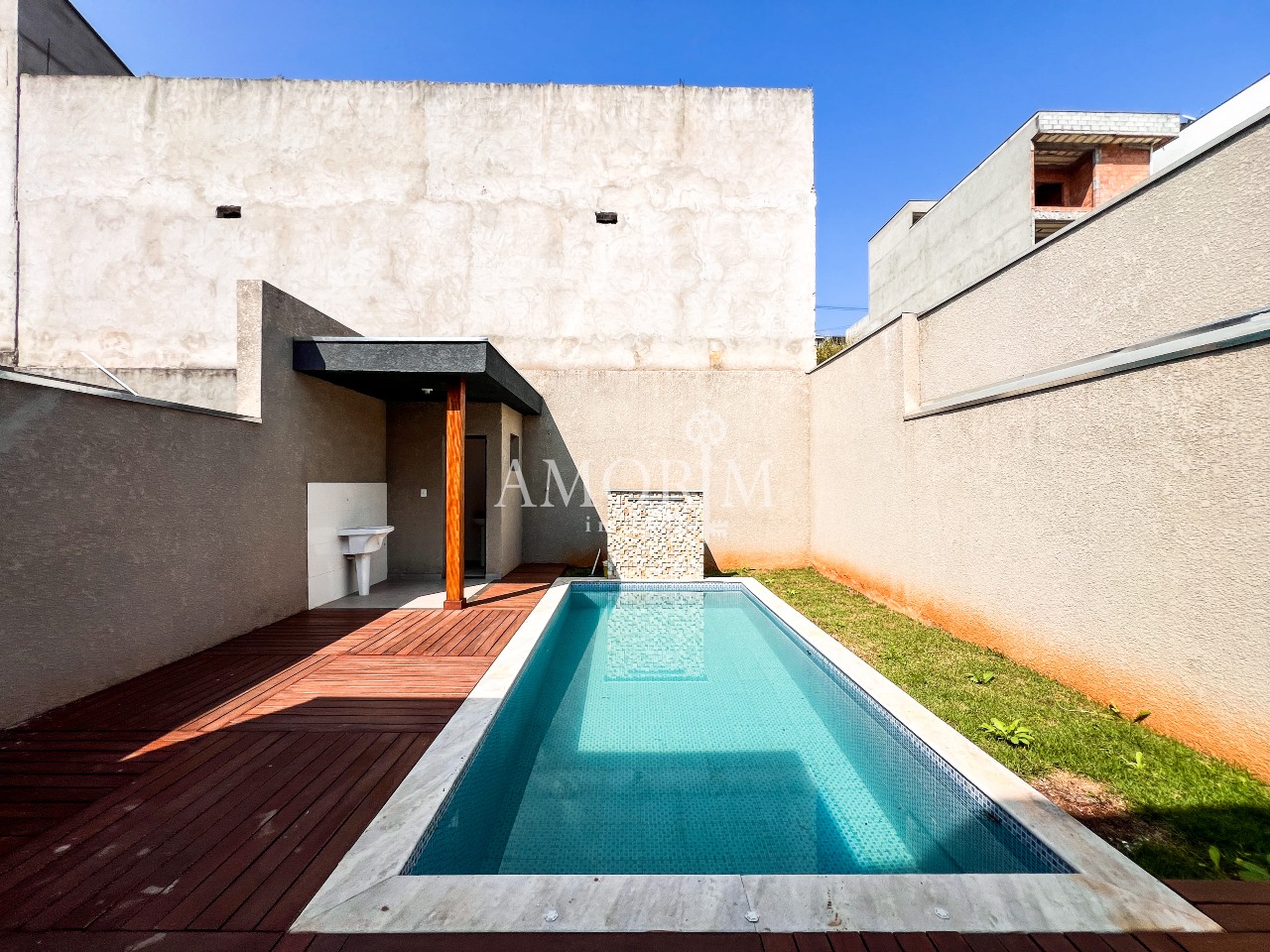 - Piscina com fonte e deck amadeirado