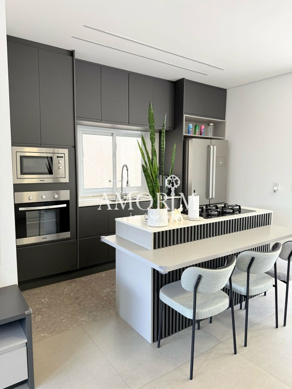 - Eletrodomésticos embutidos: forno e micro-ondas Tramontina, geladeira 3 portas Brastemp, fogão embutido Electrolux