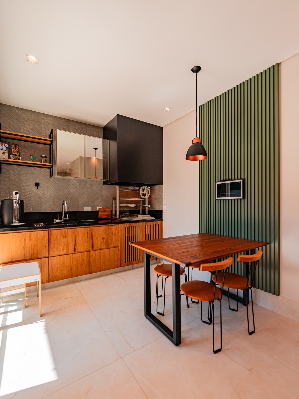 - Cozinha com bancada ilha gourmet para 4 pessoas