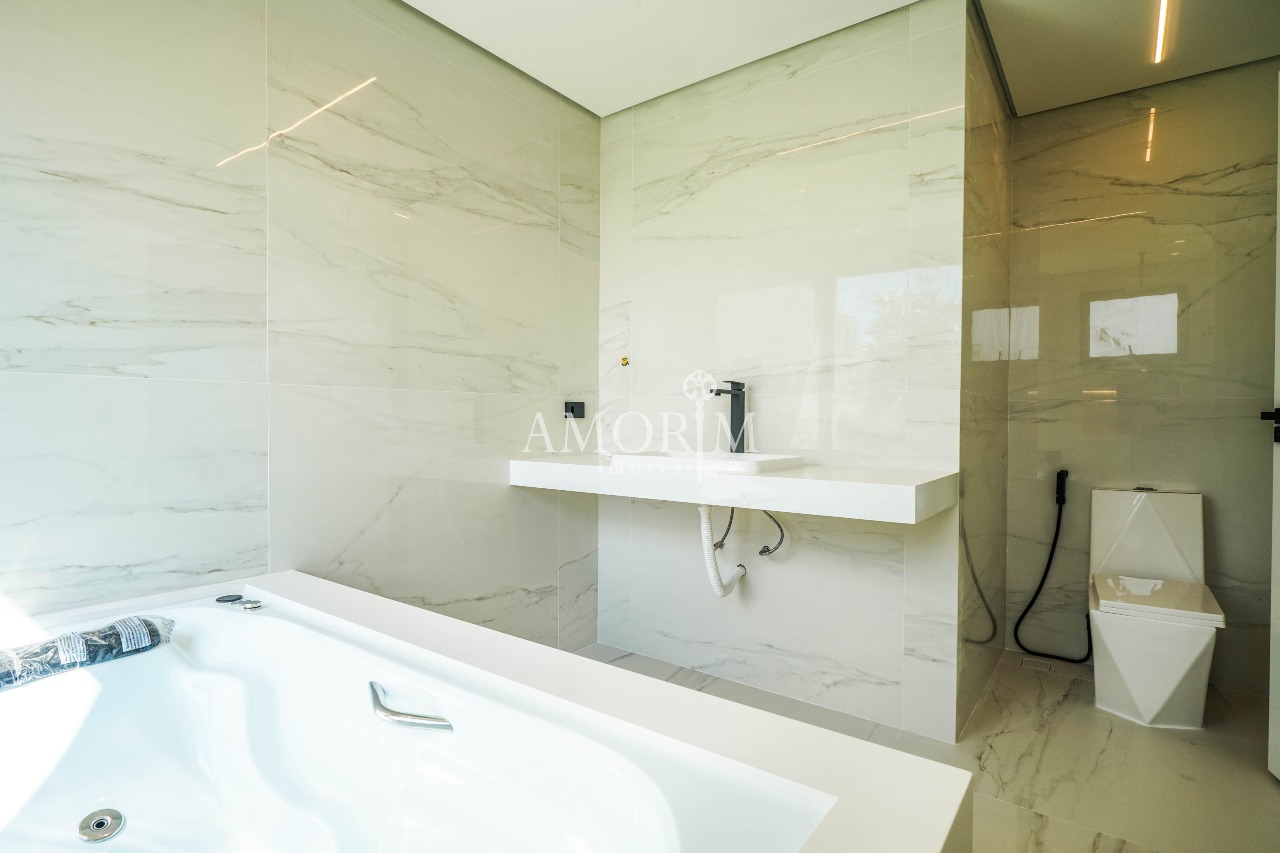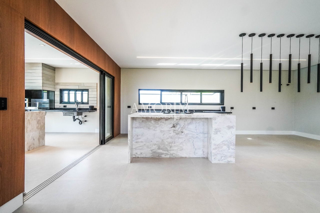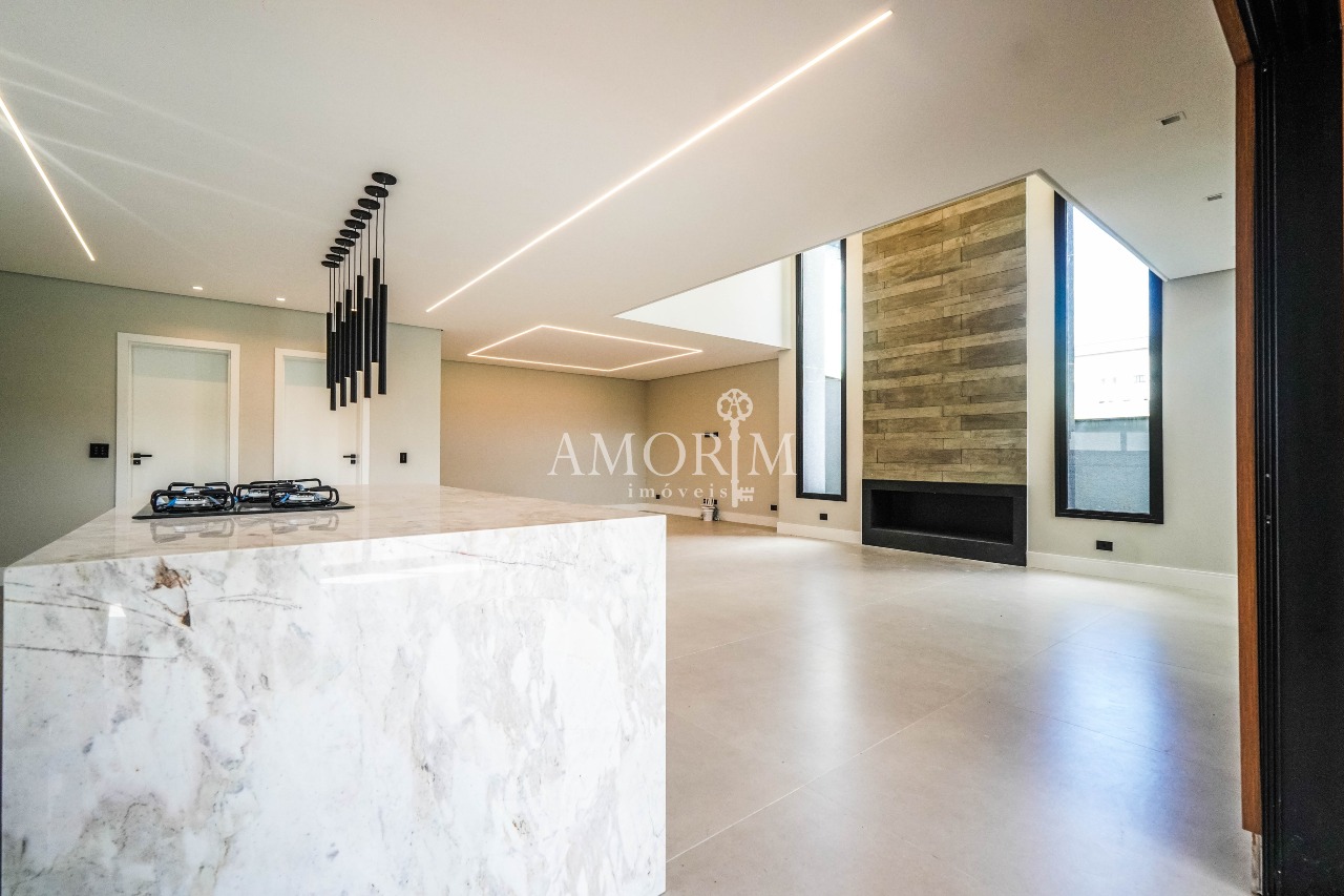 - Casa iluminada com perfil de LED, lustres e pendentes