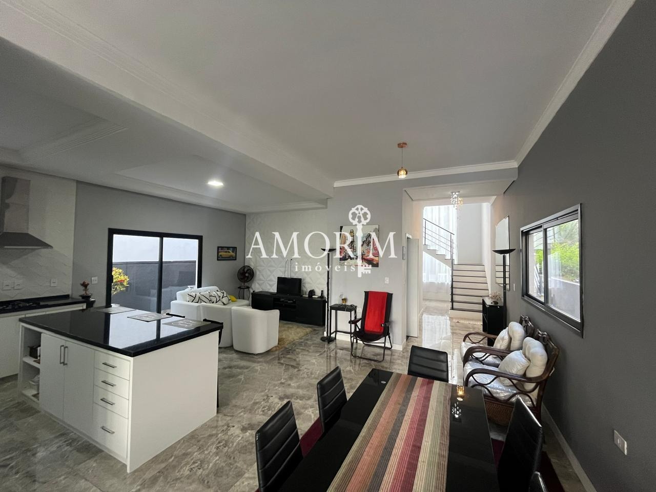 - Sala de estar e cozinha integradas em conceito aberto