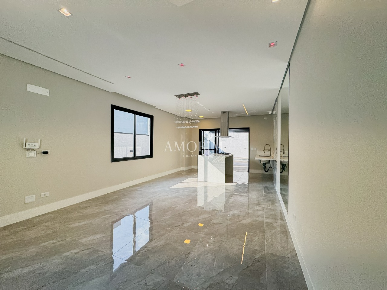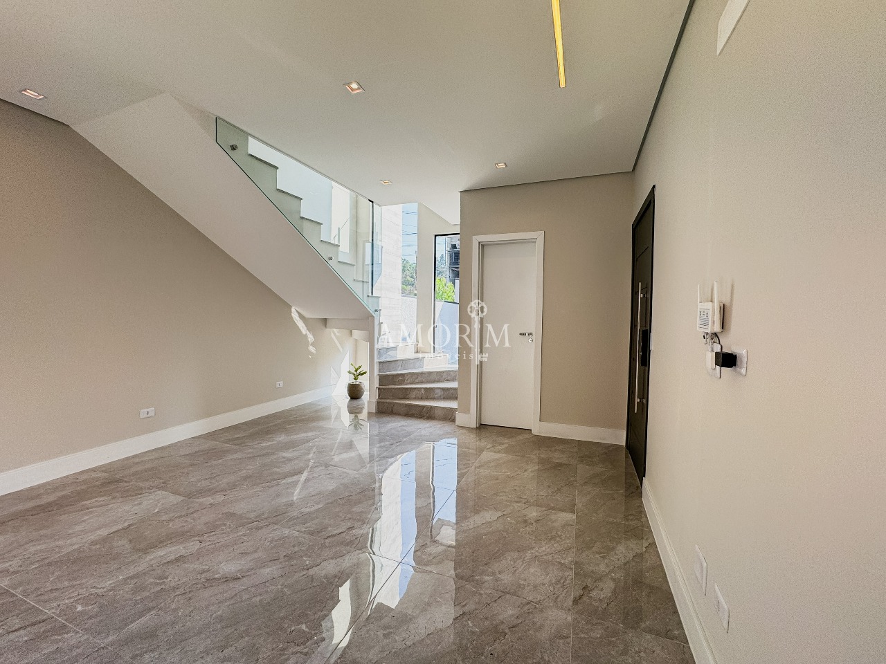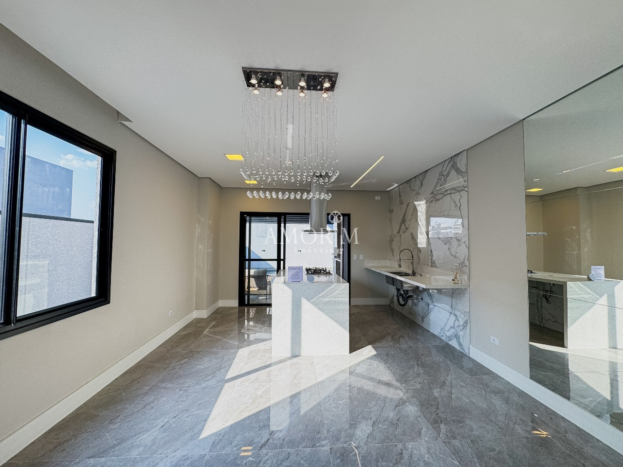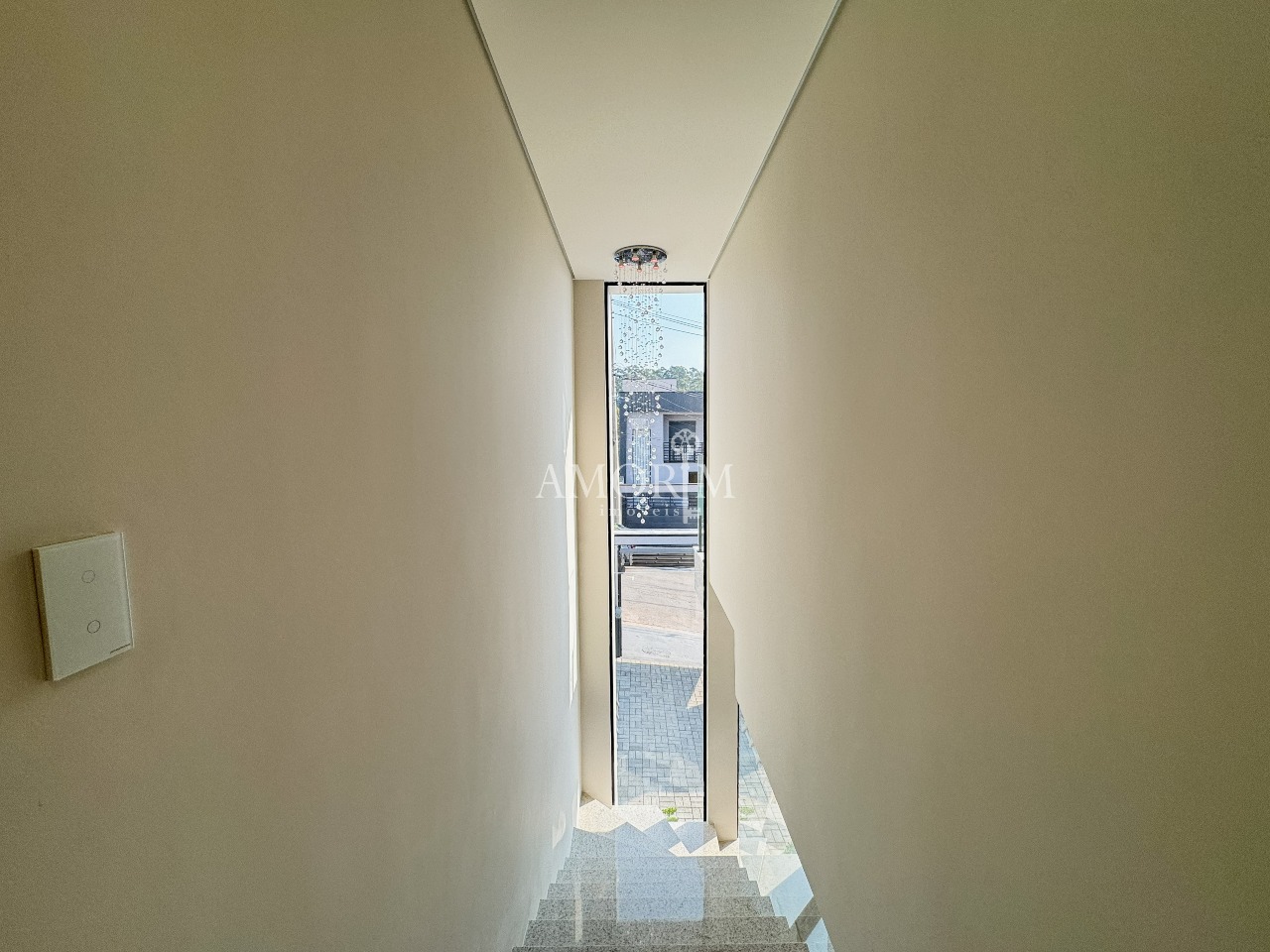 - Lustre de cristal na sala de jantar e escada