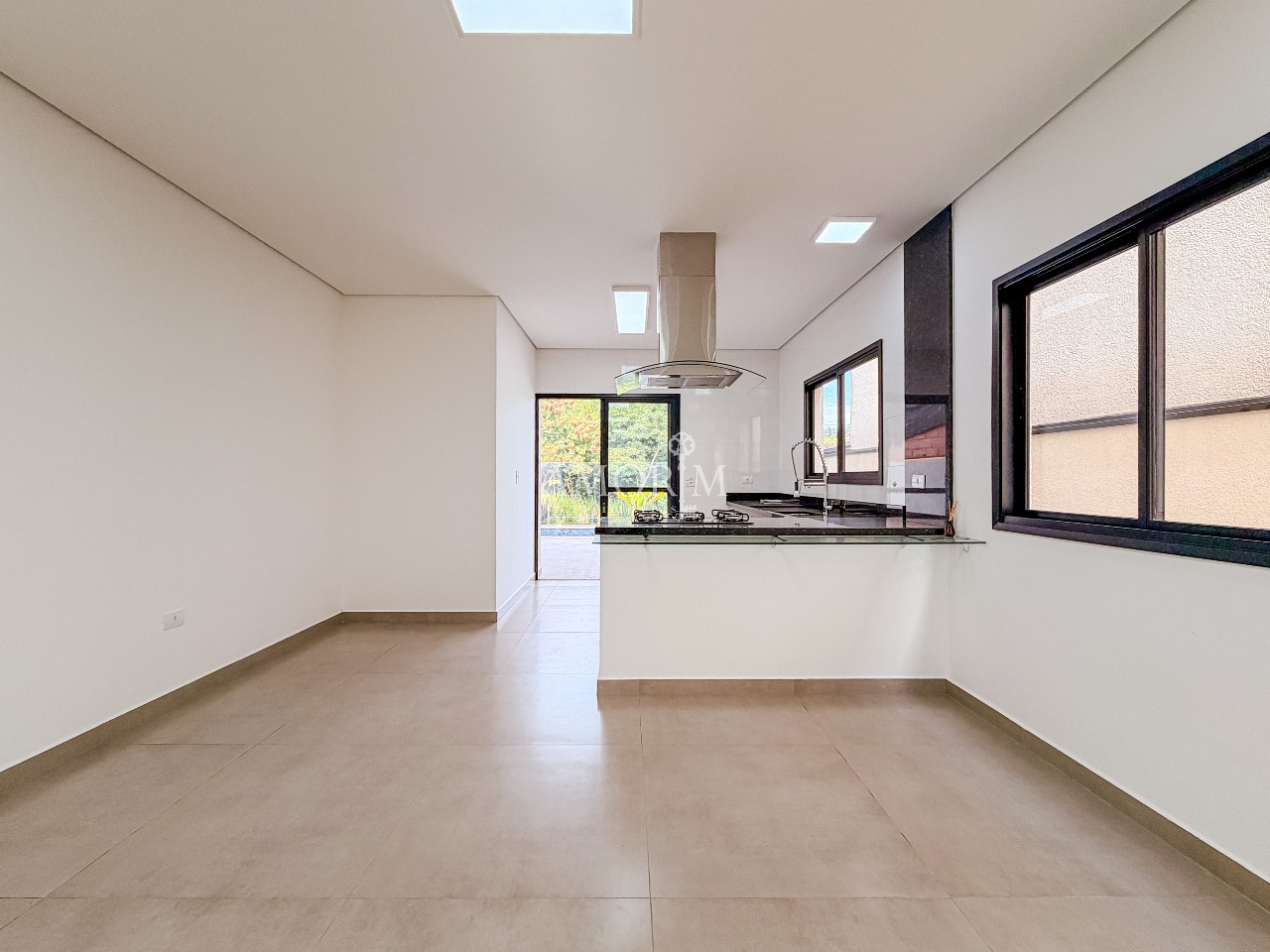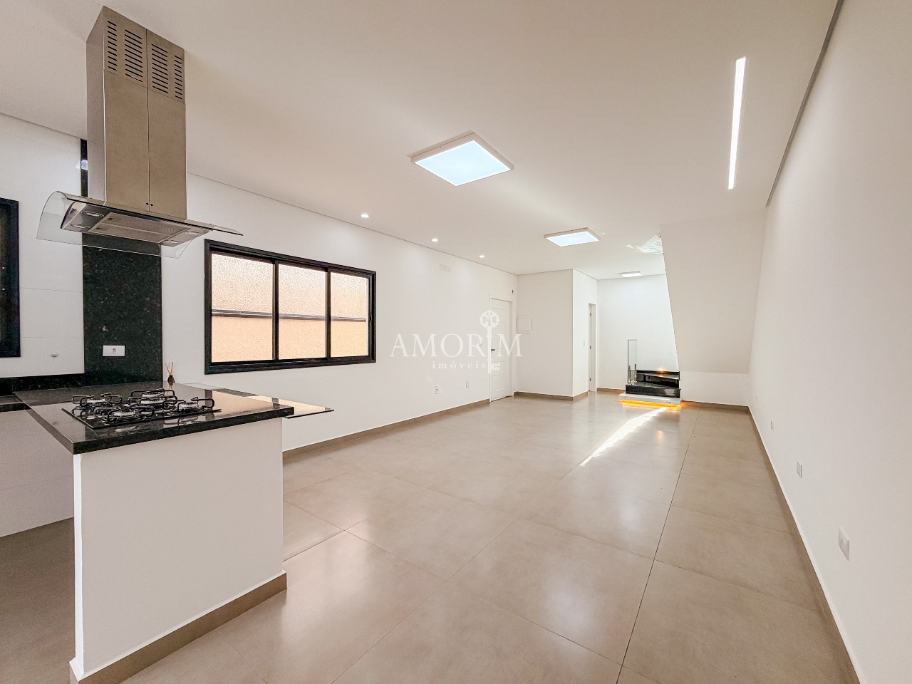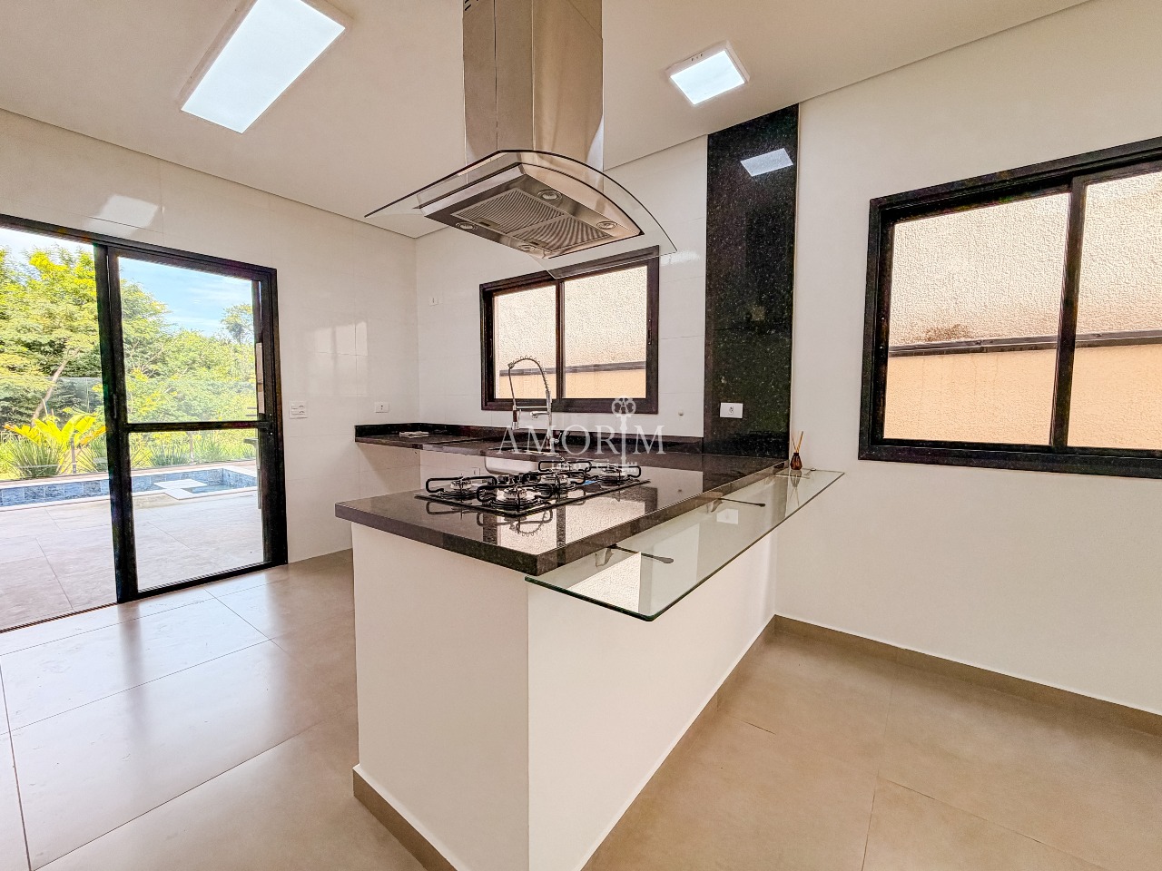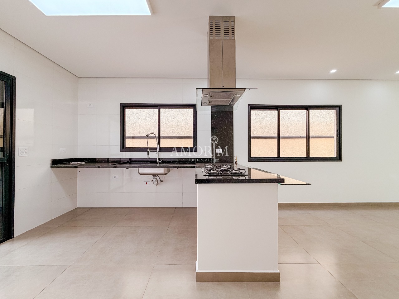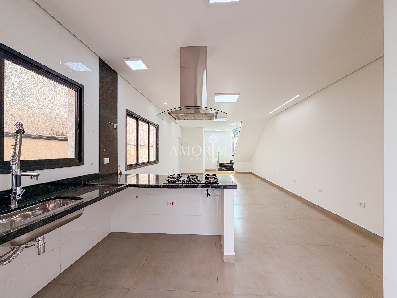 - Cozinha com península, cooktop e exaustor
