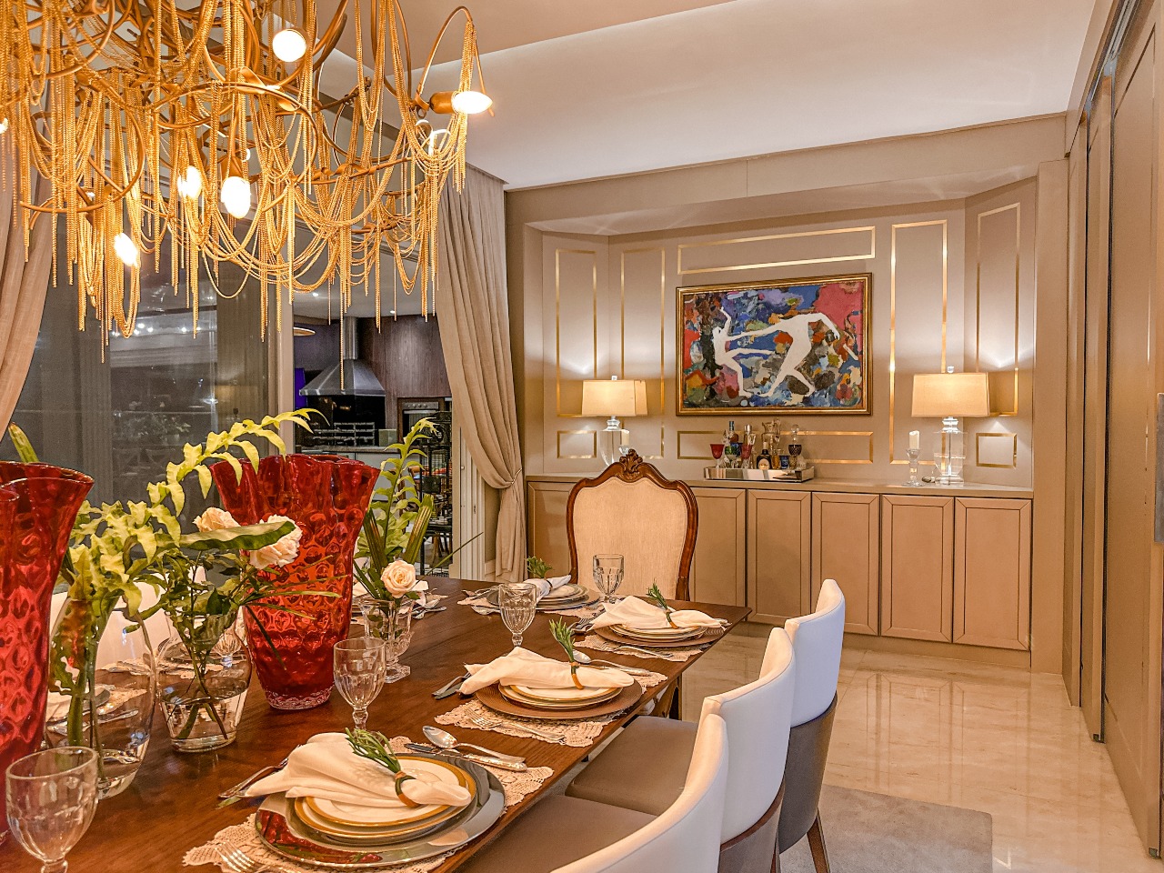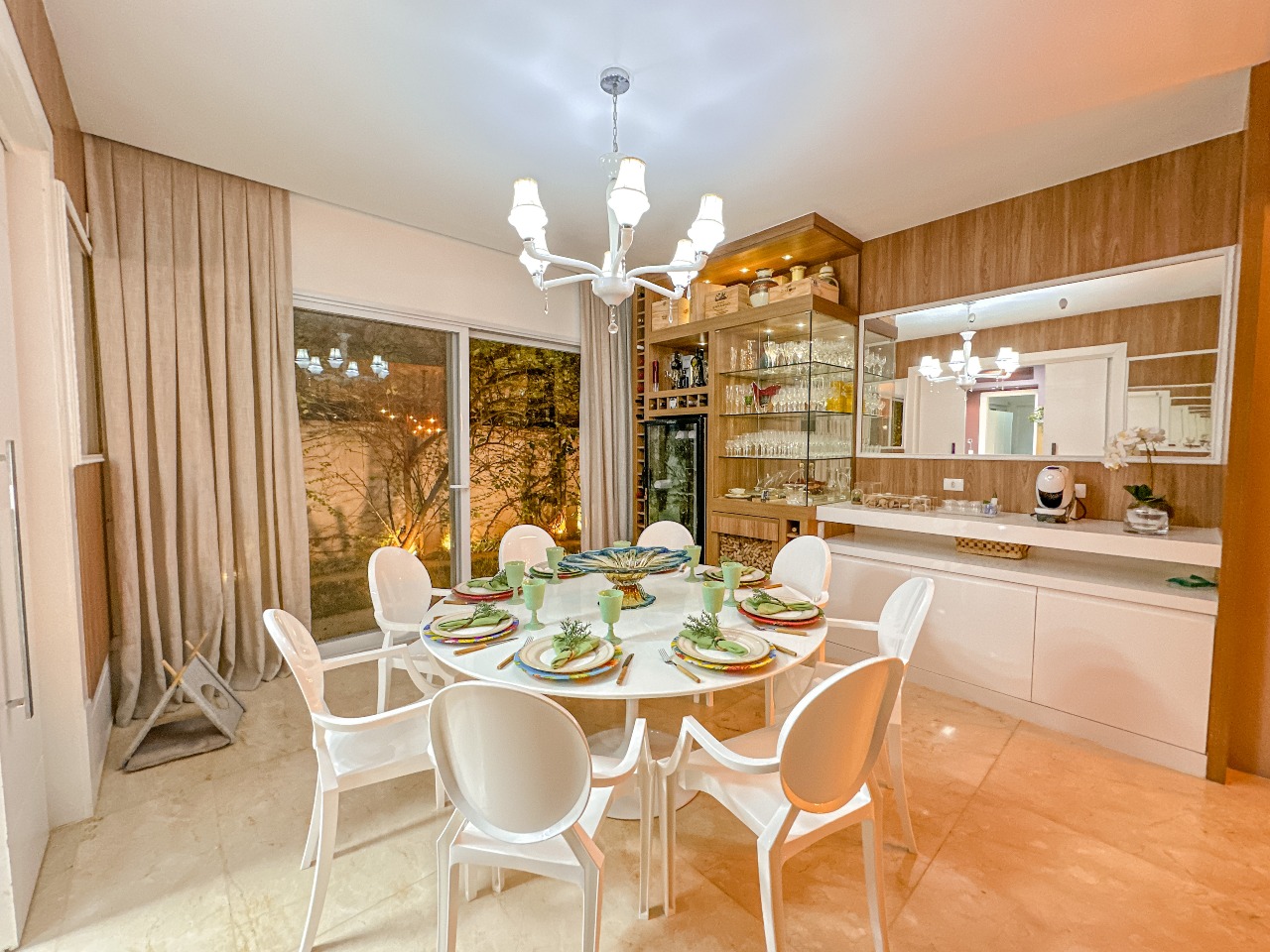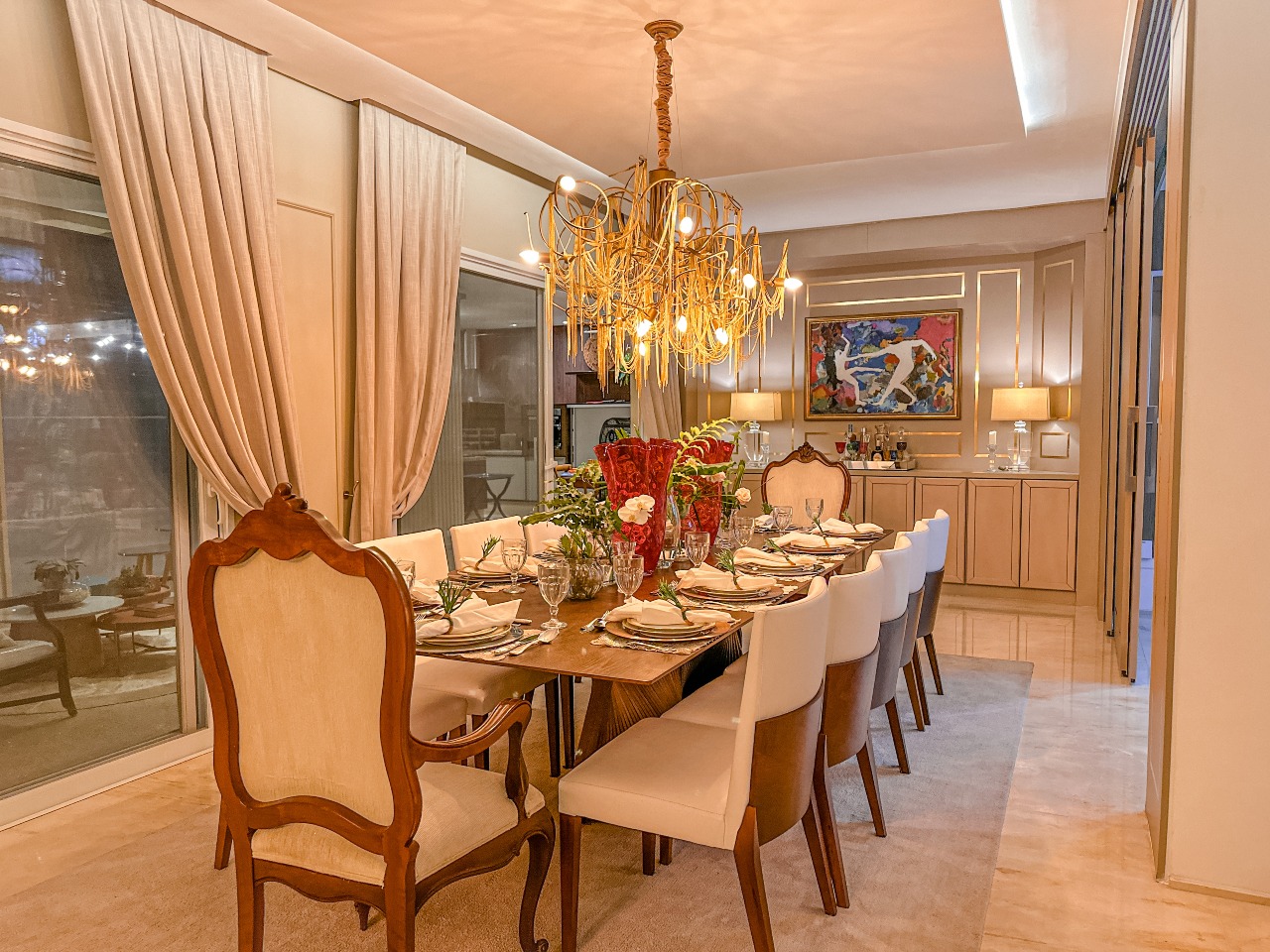 - Sala de jantar com lustre Lampadário e mesa para 12 lugares
