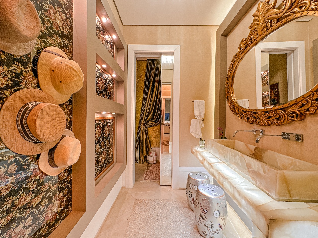 - Acabamento em mármore crema italiano, hall e escadaria em madrepérolas