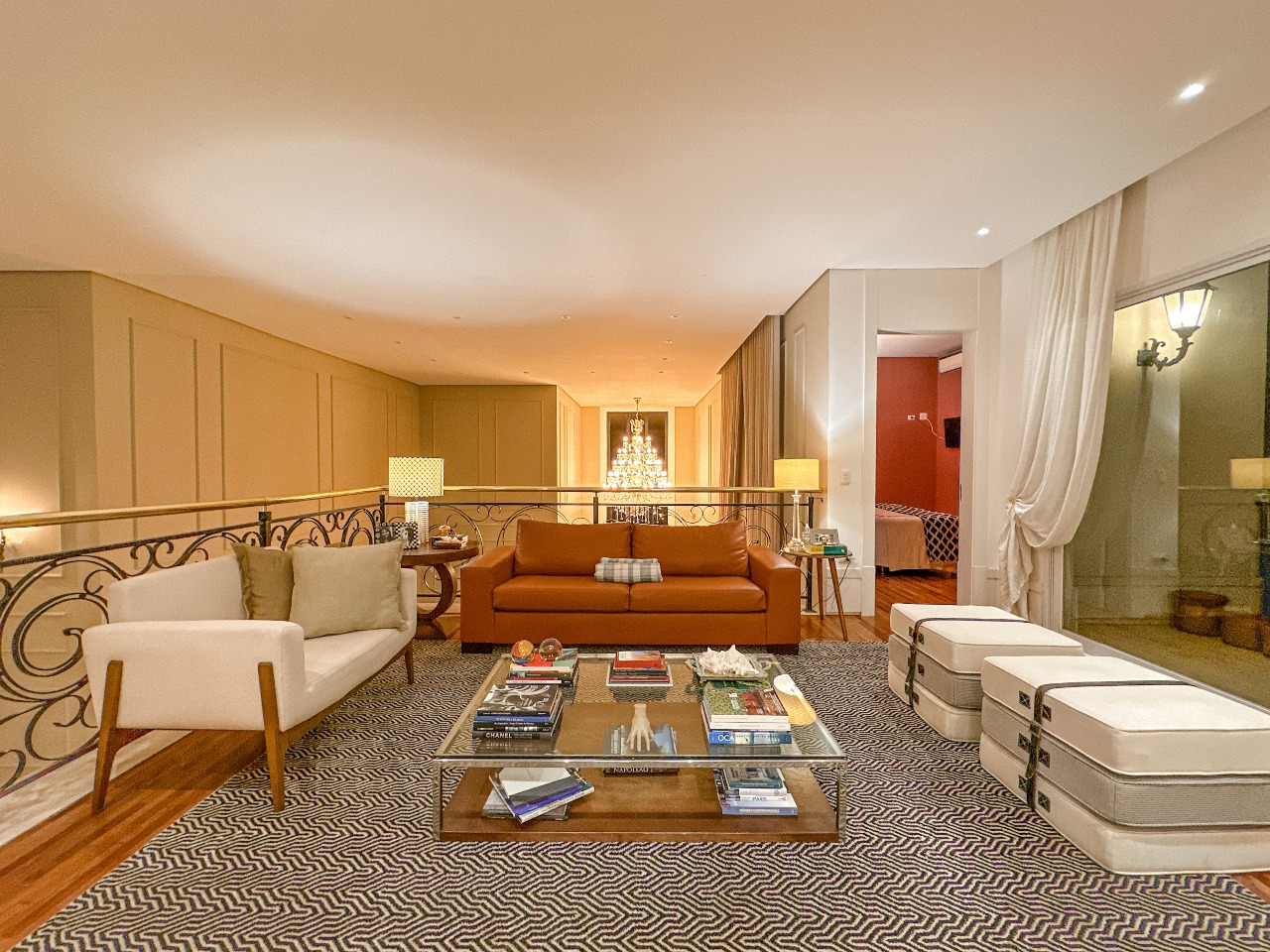 - Sala de leitura no mezanino de acesso à área íntima