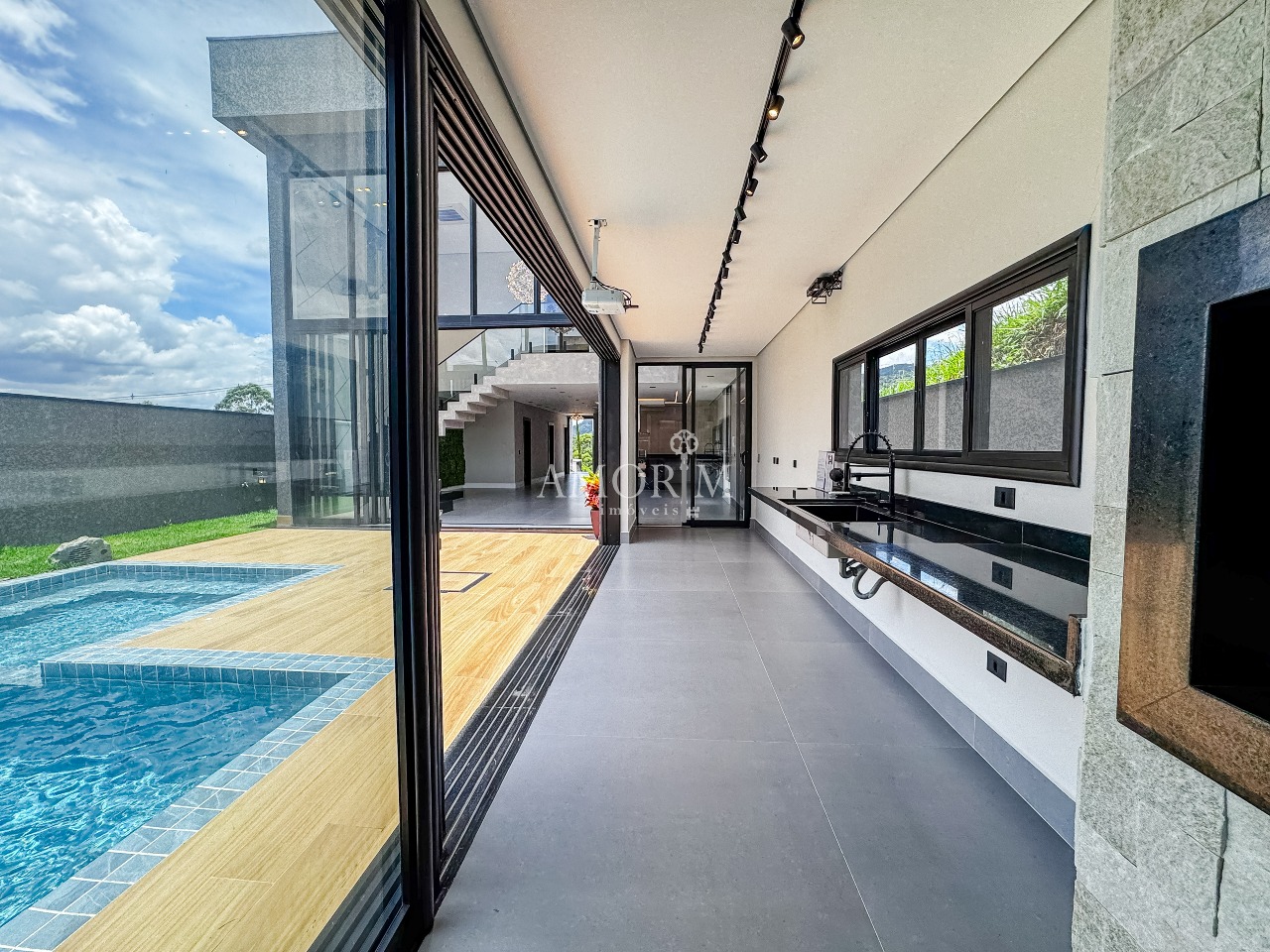 - Cozinha pé direito duplo integrado com área da piscina