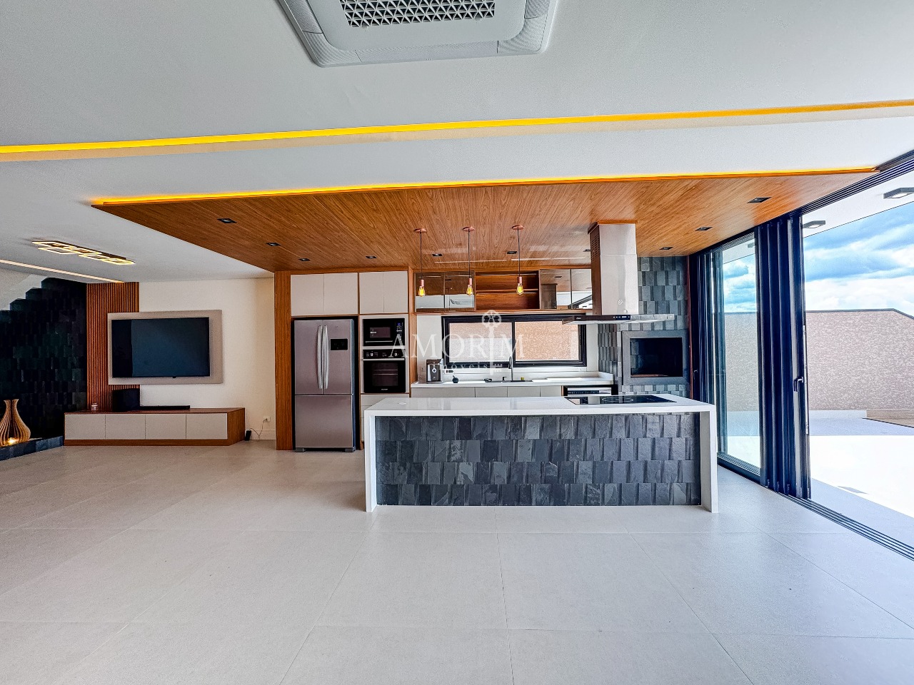 - Cozinha completa com geladeira, forno, micro-ondas, bebedouro, cooktop, lava-louças e coifa