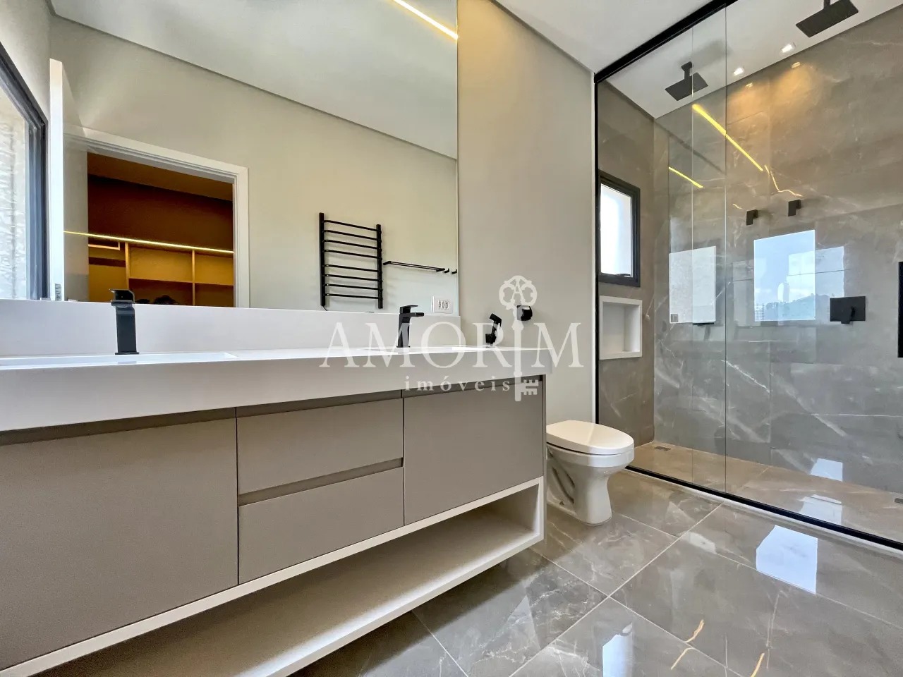 - 1 suíte master com vista para mata, sacada coberta privativa e closet