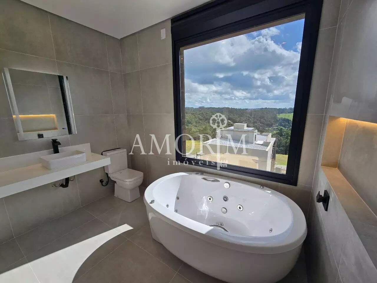 - Suíte master com cuba dupla, banheira de hidromassagem com aquecimento e cromoterapia