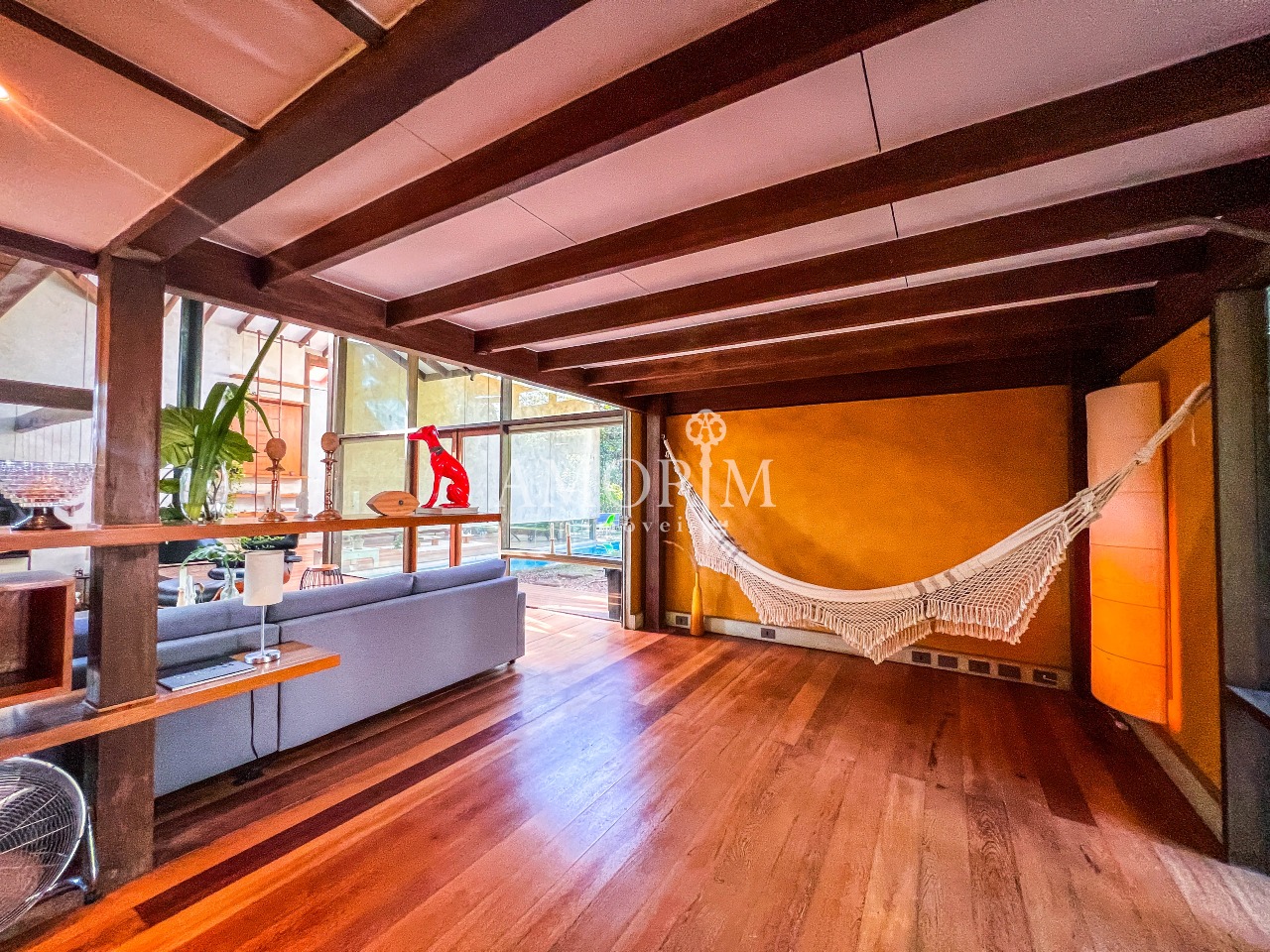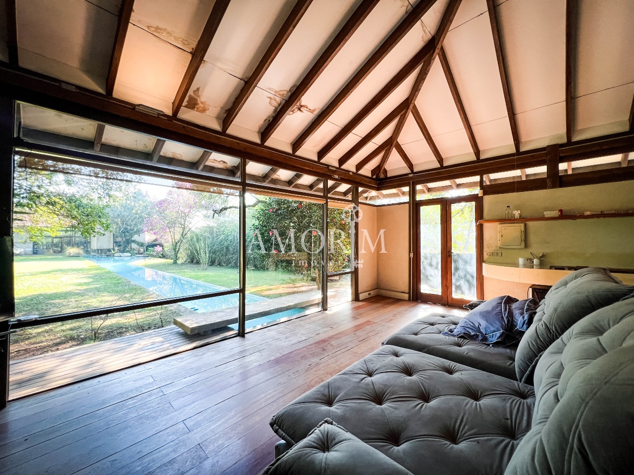 – Ateliê envidraçado com vista para a piscina e gramado