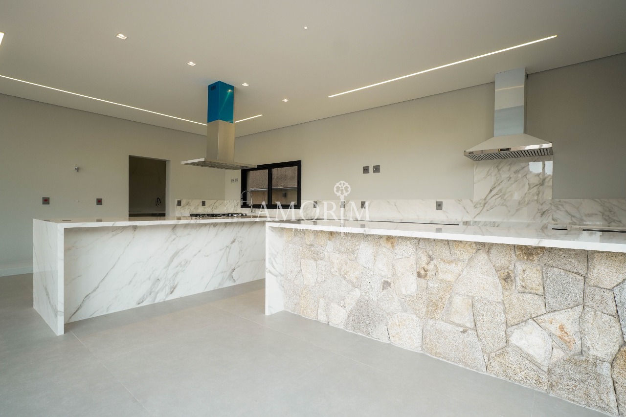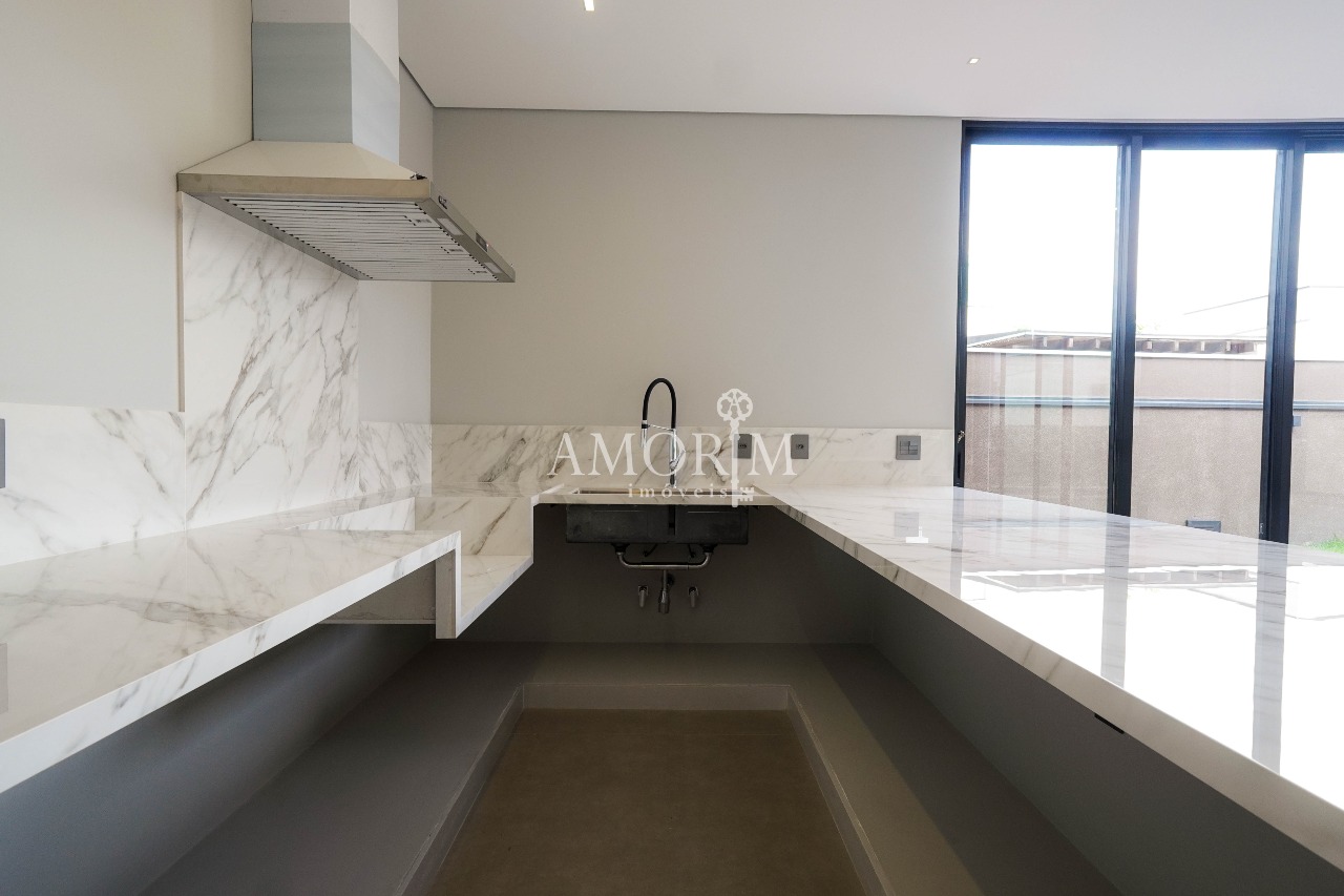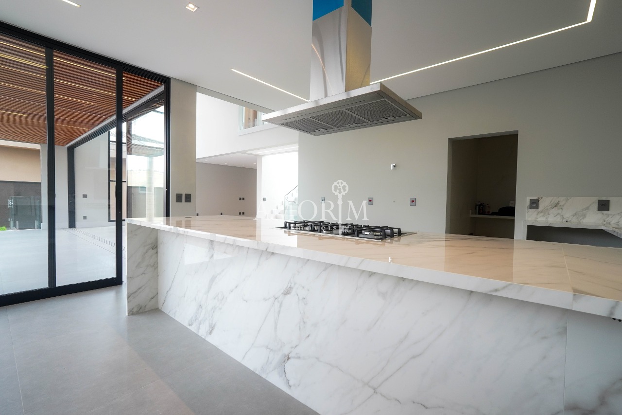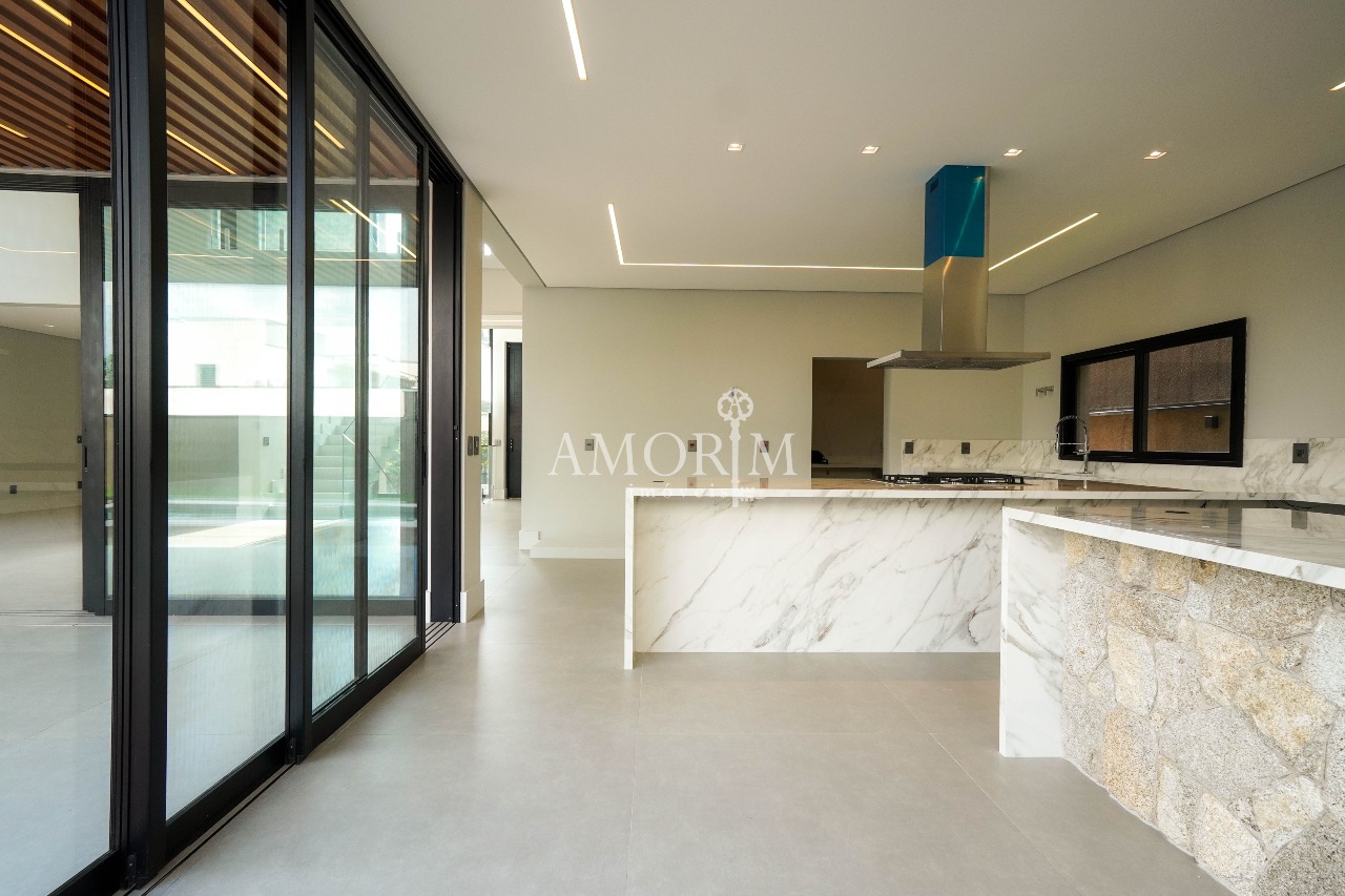 - Cozinha moderna em conceito aberto, integrada ao espaço gourmet e área de lazer