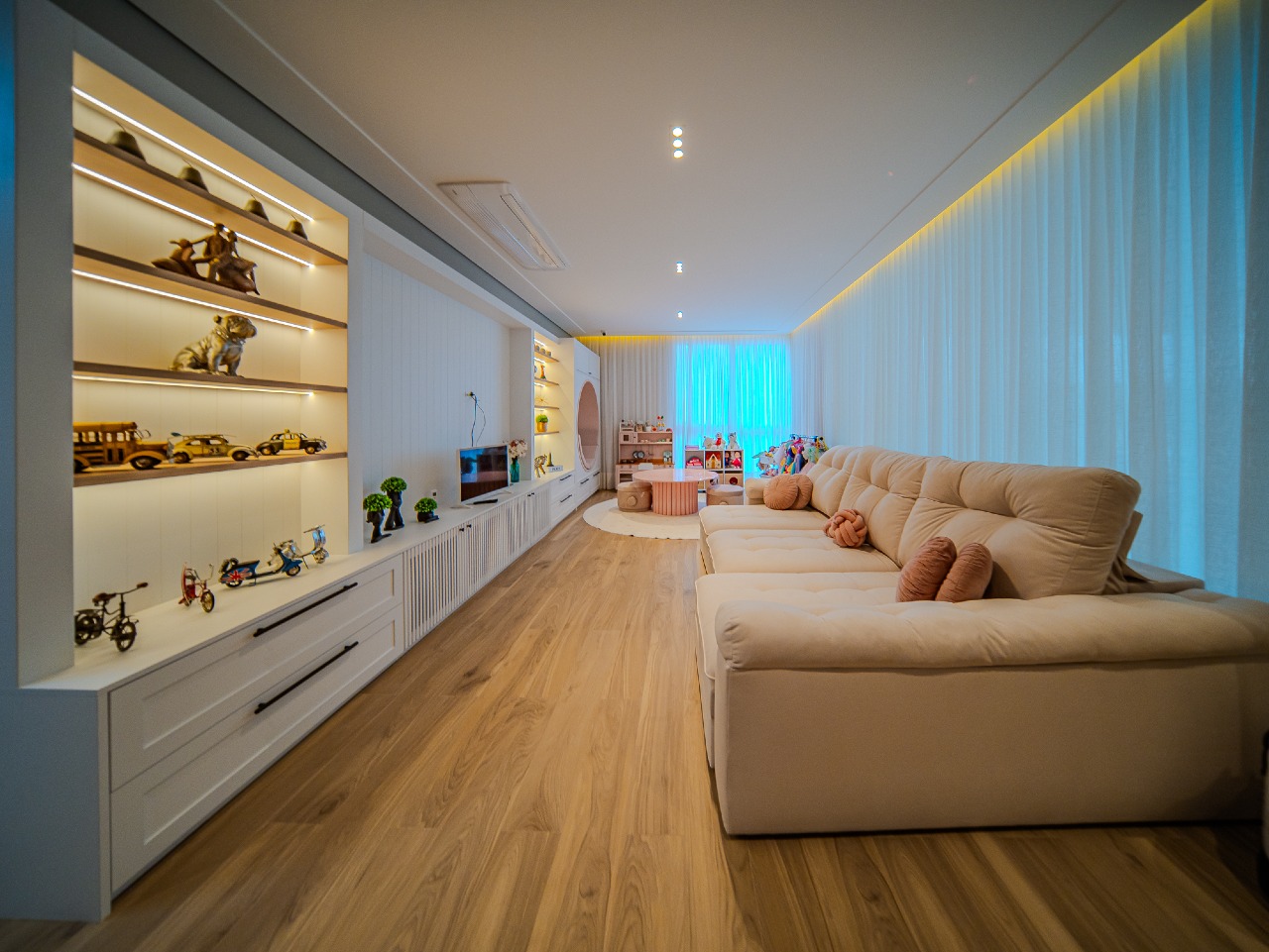 - Salão de festas com cozinha, área de TV e brinquedoteca